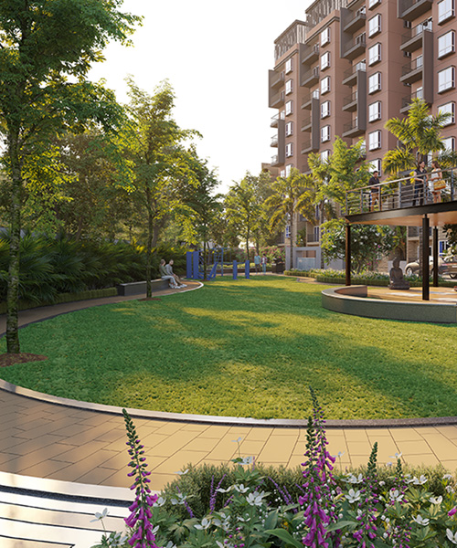 The lush, landscaped gardens and open spaces provide a tranquil retreat from the hustle and bustle of city life. Whether it's a morning walk, an evening stroll, or simply relaxing outdoors, the beautifully maintained lawns offer a peaceful environment.